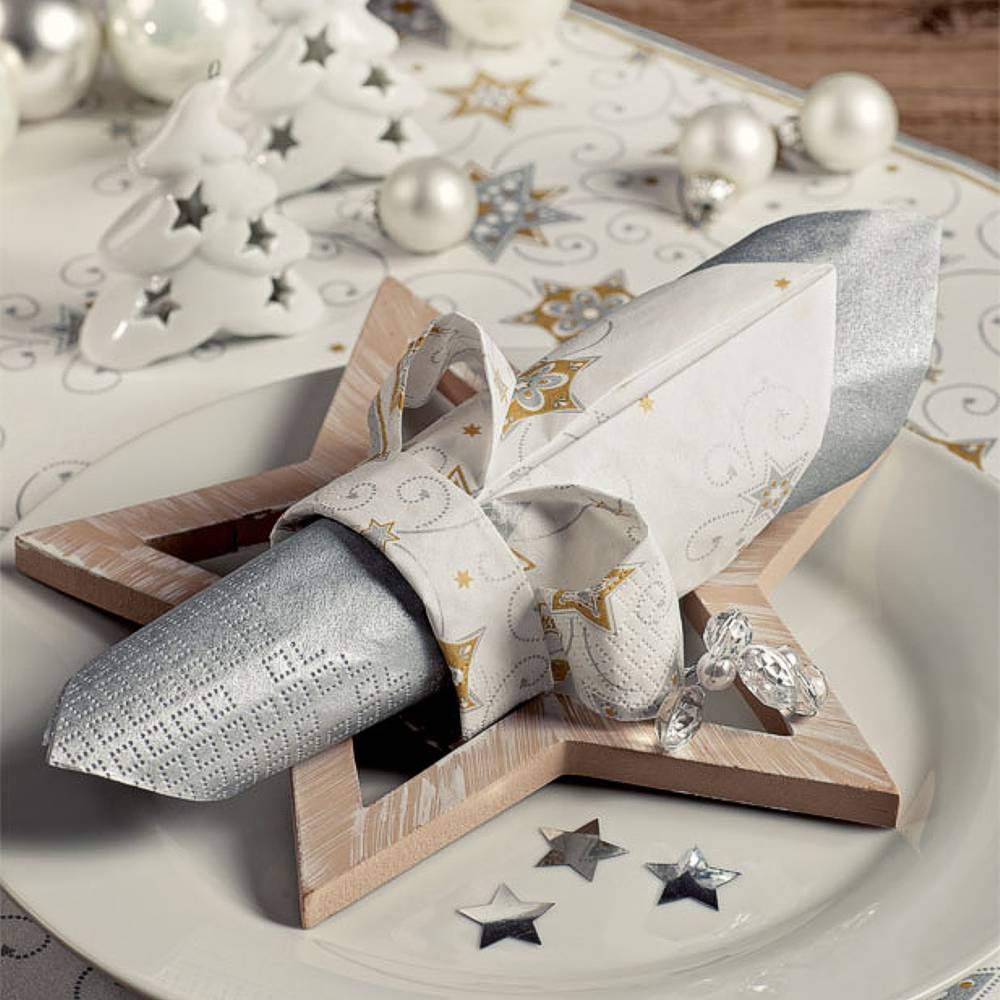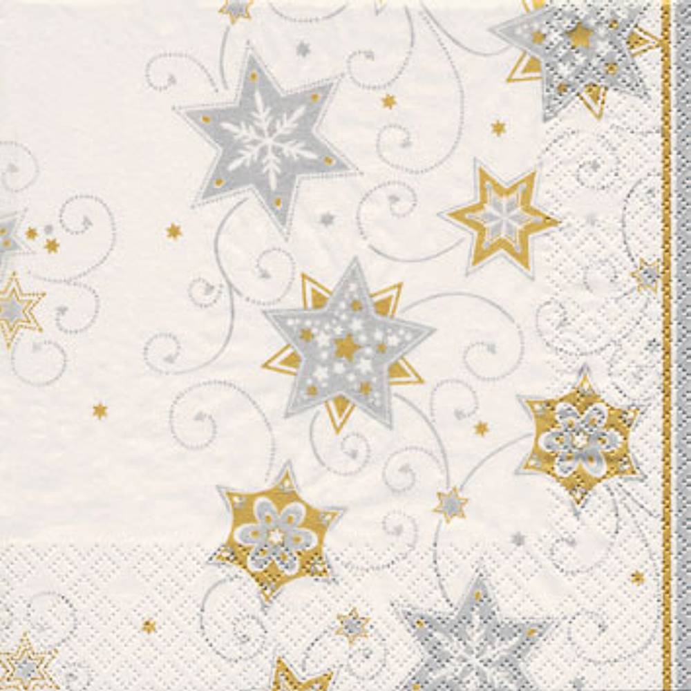 - Motiv: Ein klassisches Sternenmotiv in den Farben Gold und Silber passt sich perfekt in eine stimmungsvolle Tischdekoration ein.